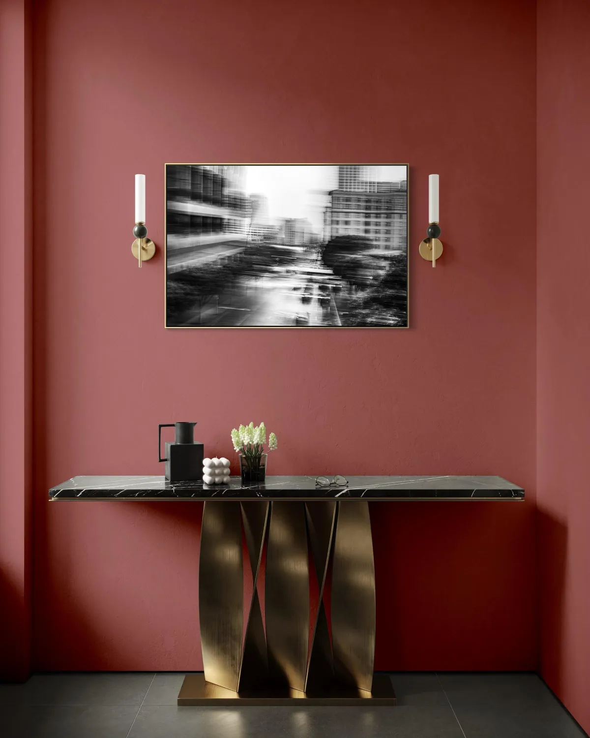 The result is contained velocity: an image that continues to respond to its environment, unfolding with light, architecture, and lived experience over time.